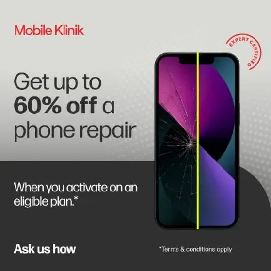 Activate on a phone plan in-store, and get 60% off your phone repair* conditions apply